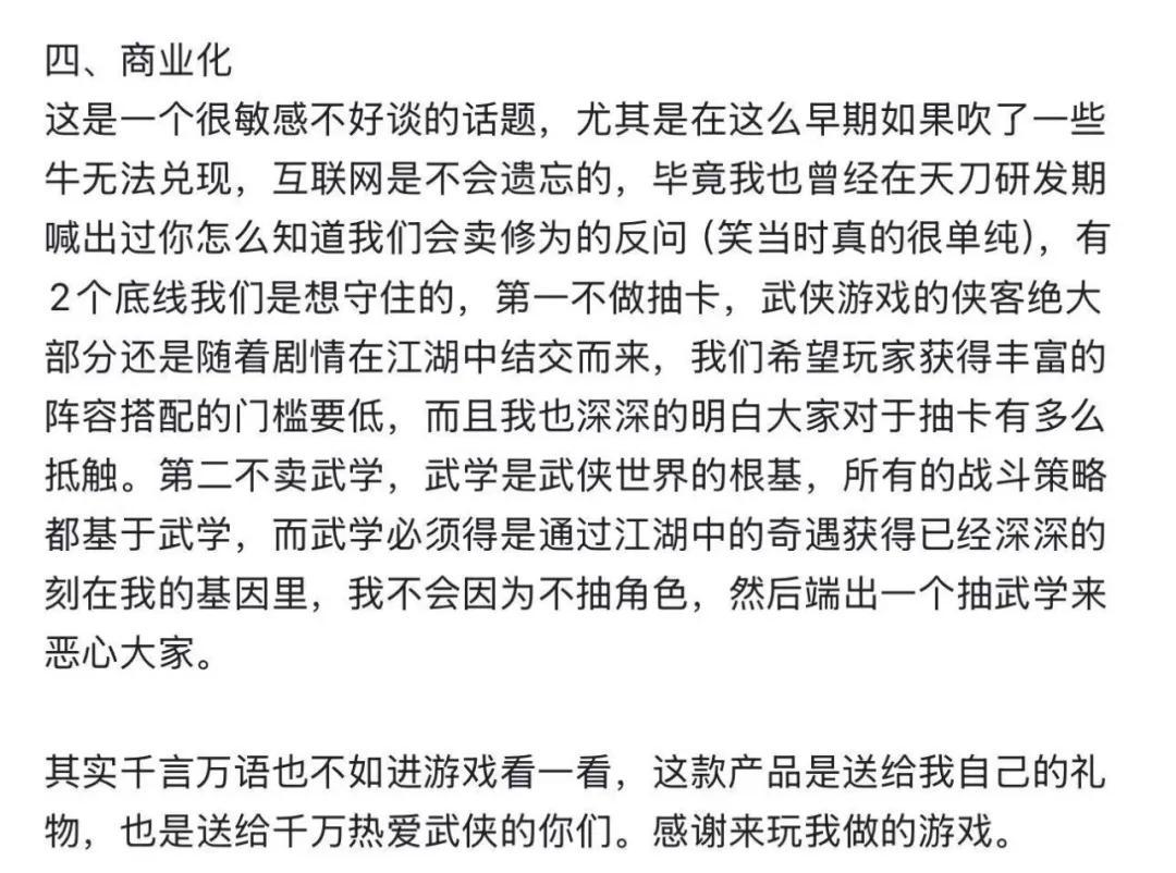 因爲玩家普遍比較關注商業化的問題,製作人也做了專門的說明