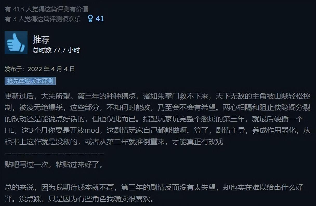 很多武俠遊戲的評論區都存在這種“捏着鼻子給好評”的現象