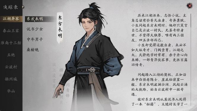 實際上,《劍隱俠蹤錄》這個名字中的“俠蹤錄”本身就是一本可供翻閱的“江湖讀物”。玩家在遊戲過程中的每段主線、支線故事,都會以第三方說書人的視角和口吻記錄下來,同時這個故事的講述者也是主角團隊的一部分——類似《巫師3》中吟遊詩人丹德里恩這樣的設計。