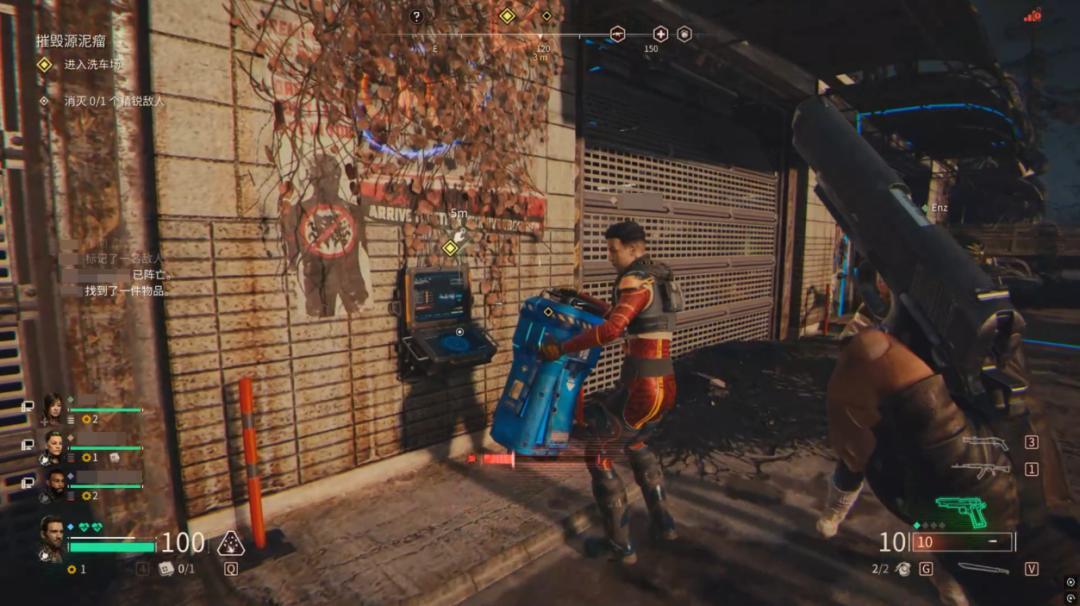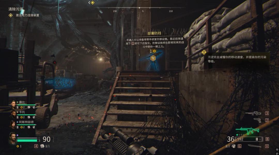 部分關卡強制要求玩家開到終點的載具,自然也有大用。例如,“抗污泥”載具裝載有淨化裝置,能夠生成屏障,阻擋空氣中一呼吸就掉血的污染。後續橋段需要下車,四人小隊得有個人抱着淨化裝置往任務點走,剩餘三人也要緊跟屏障,清理屍潮。這時的體驗會有些手忙腳亂,很喫團隊配合,又帶來了類似《命運2》Raid本一般的體驗。