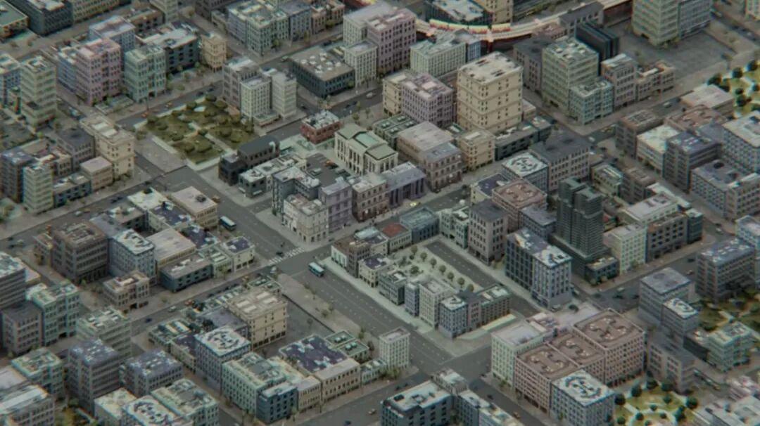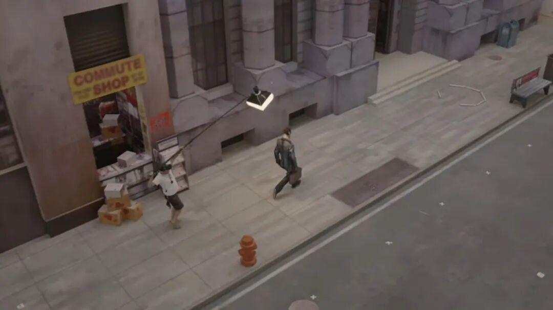 爲了配合這種復古遊戲感,短片的美術團隊也精心計算了低清紋理材質的尺寸,讓它們能以高糊版本出現在街景上;燈光師也需要配合模擬出老遊戲機能低下的陰影渲染,實拍出一個幾乎“無陰影”的平光世界,配合着等軸測視角,才讓整個畫面看起來就像個真正的老遊戲。