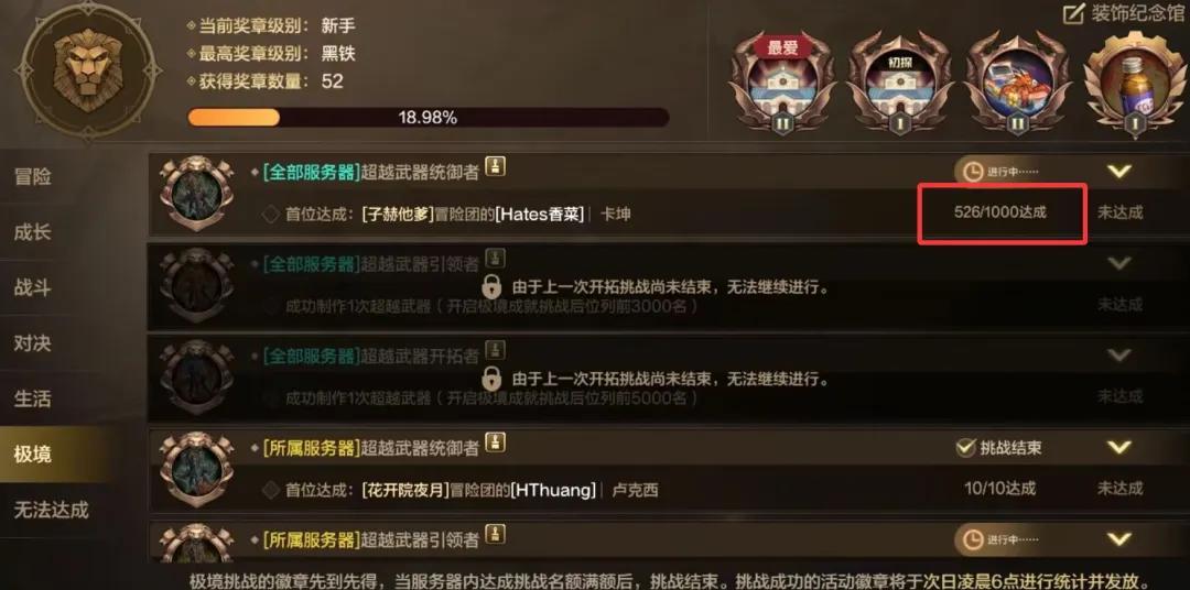 這可不是俺在說髒話哈,按照活動獎章統計,80版本開服僅2天,就已經有超過500位玩家制作了超越武器。