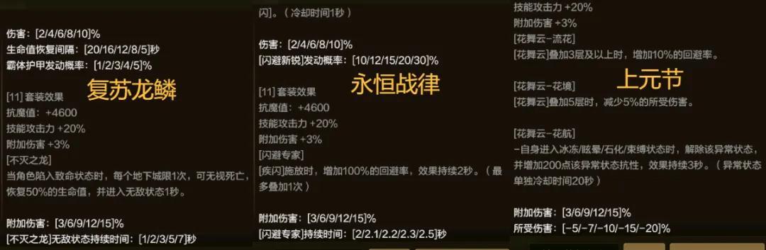 上面這3套就屬於標準的“衡量標杆”,自身強度不錯、且具備一定的功能性加成;