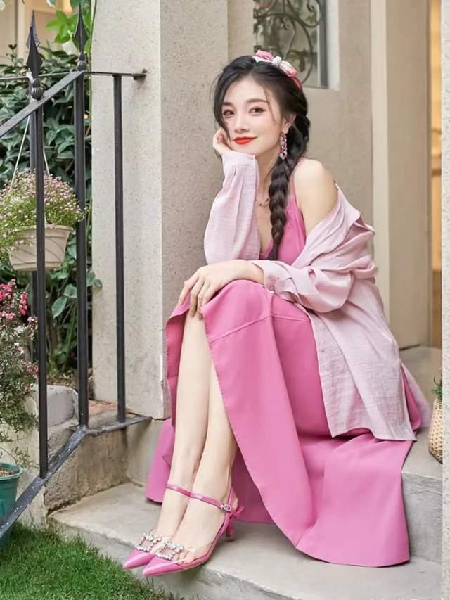 “一身粉”的穿搭,其實很多人都不敢冒險嘗試。因爲穿粉色的確很有風險,更何況是全身粉,在這個時候,我們就可以藉助色調、材質和版型,巧妙的形成對比關係。