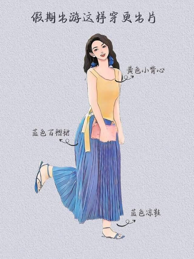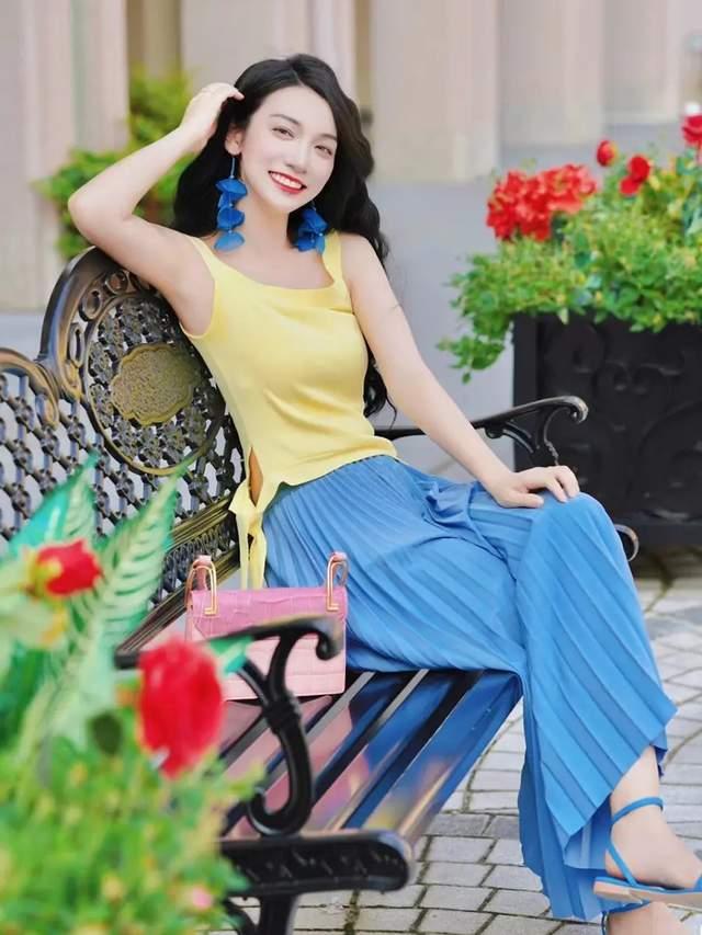 溫柔的奶黃色背心,很適合春夏季節。剪裁貼合上身曲線,顯身材又減齡。搭配藍色百褶半身裙,優雅氣質藏都藏不住。耳環和裙子同色,上下呼應更協調,拎款粉色包包,少女感瞬間撲面而來。出遊時穿這一套,真是魅力無限!
