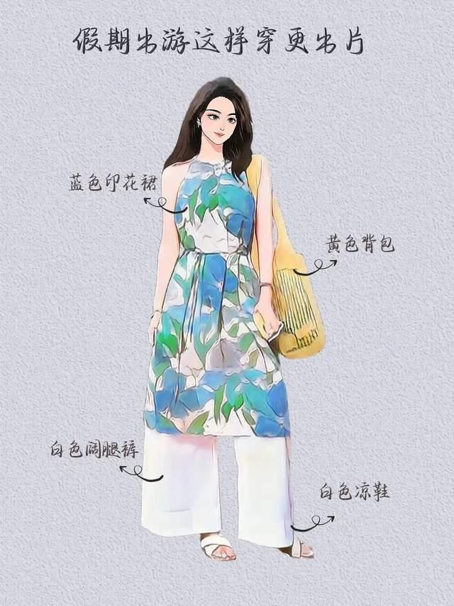 春日穿搭的精髓,還離不開“平衡感”。身穿藍色印花裙的時候,可以藉助白色闊腿褲中和,避免整體太過花哨俗氣。印花圖案也要簡約大氣一些,即便覆蓋面積大,也不會有土味感。