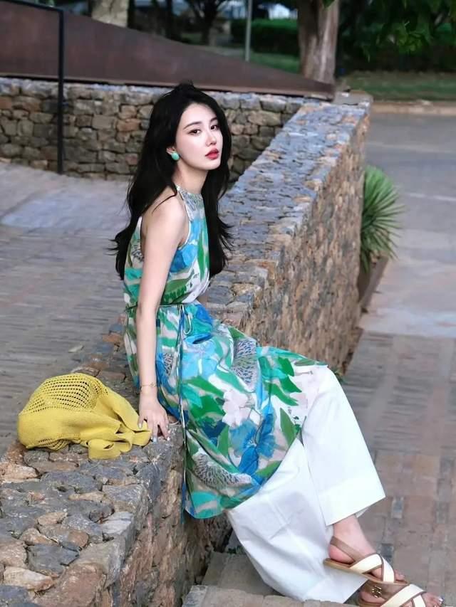 聰明女人穿印花裙,都懂得適當“留白”。比如下身疊穿一件白色闊腿褲,或者是選擇無袖的款式,增加露膚面積,視覺上更具呼吸感。若是拎上一款黃色針織包,又能形成很好的撞色效果。