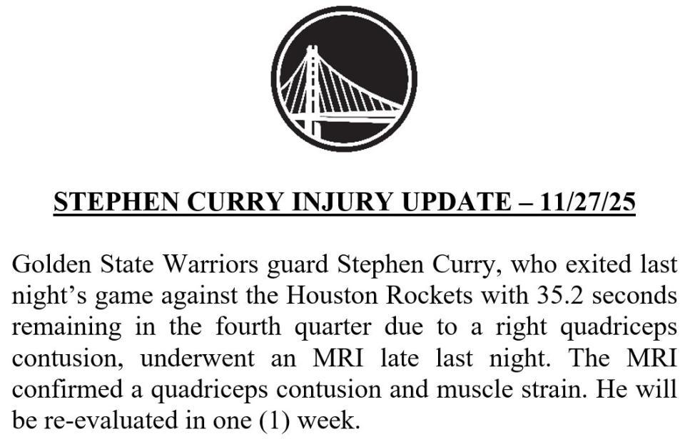 至少休一週!勇士確診庫裏四頭肌挫傷和肌肉拉傷:本季缺他1勝3負