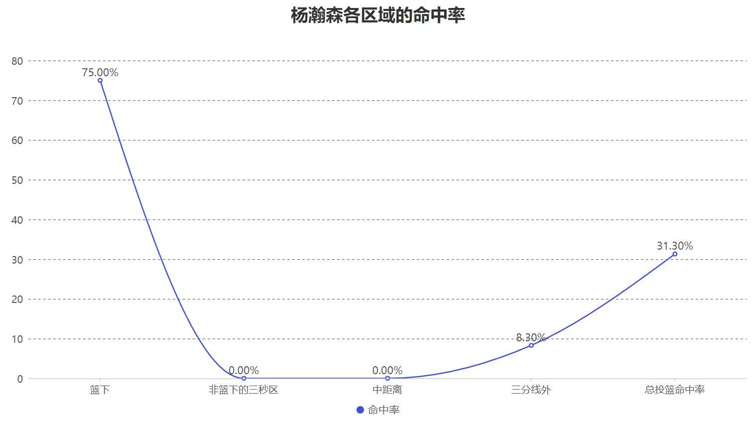 造成在場負面作用的原因主要有三,其一是楊瀚森的終結能力。楊瀚森本賽季的罰球命中率達到了87.5%,這意味着當處於無人干擾時楊瀚森有着穩定的得分能力,而一旦在運動戰他在跑動或對抗後的命中率會低到令人髮指的程度,但若是距離籃筐更近他可以通過對抗後完成得分,在籃下區域楊瀚森目前12次出手命中9球命中率達到75%,而在非籃下三秒區以及中距離他的命中率爲零,這些可以表明楊瀚森在進攻端只有在籃下才能有較爲出色的終結水準,這個得分能力不能說沒有但這樣的得分前提太過苛刻。