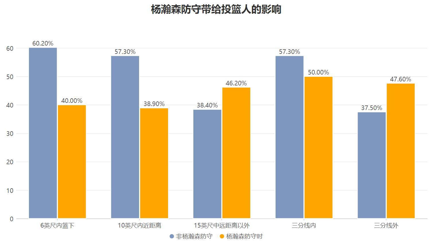 其三是楊瀚森防守端的問題,實際上楊瀚森並非沒有防守的球員,在6英尺內的籃下與10英尺內的近距離區域,楊瀚森均能明顯降低對手的命中率,但在15英尺中遠距離以外以及三分線外他也會令對手的命中率飆升,這意味着他的防守只在距離籃筐較勁時纔是正面貢獻,但由於運動能力不足他換防外線時會陷入極度掙扎的狀態,不上前就等於放對手投籃,上前就會被對手一步過掉。