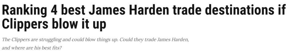 美媒列哈登四大潛在下家:聯手華子衝總冠軍 去開拓者激活楊瀚森?