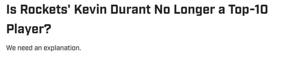 除了杜蘭特可能當爸爸引起熱議,近期美媒還在討論另一個話題,現在的杜蘭特,還是不是NBA前10的球星。