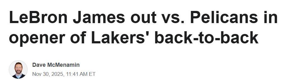 今日對鵜鶘的比賽,是湖人背靠背的首戰,他們將於明日主場迎戰太陽隊。詹姆斯的長期好友兼經紀人、Klutch體育公司CEO裏奇-保羅上週向ESPN透露,考慮到詹姆斯正征戰創紀錄的第23個NBA賽季,爲保護其身體狀態,他更傾向於讓詹姆斯在背靠背的比賽中休息一場。