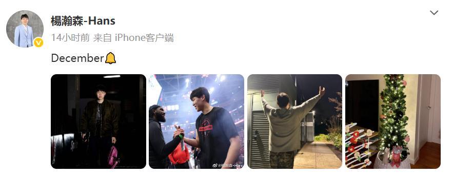 昨日,楊瀚森在社媒上曬出了四張照片,第一張是自己拿着粉色小書包,第二張是與前開拓者狀元奧登的合影,第三張是高舉雙手的“加班儀式”,第四張是佈置聖誕樹的照片。新的一年即將到來,讓我們祝福瀚森繼續進步,早日真正立足NBA。