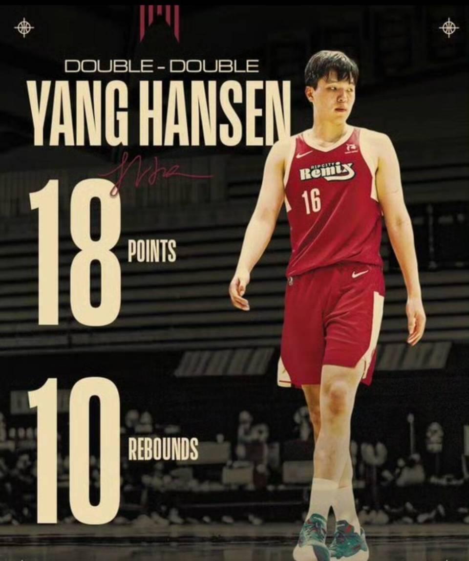 面對這樣的挑釁,楊瀚森在這一回合乃至整場比賽中都沒有退縮。面對對手的強硬對抗,他常常露出標誌性的狡黠笑容予以回應。而斯托克頓國王隊因身高不足付出了代價 —— 楊瀚森打出了加盟混音以來效率最高的一場比賽。