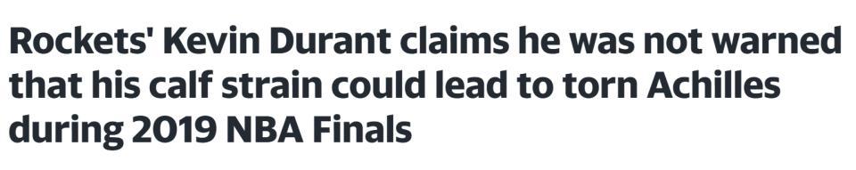杜蘭特:加盟勇士因不想再被包夾 當時真沒人提醒我有跟腱撕裂風險