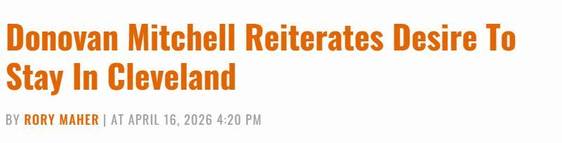 北京時間4月17日,騎士核心多諾萬-米切爾明年將擁有自由球員資格:他2026–27賽季薪資爲5010萬美元,2027–28賽季手握5380萬美元的球員選項。今年夏天,米切爾有資格提前續約一份爲期四年、總價值預計2.77億美元的合同。近日,他接受了The Athletic的專訪。