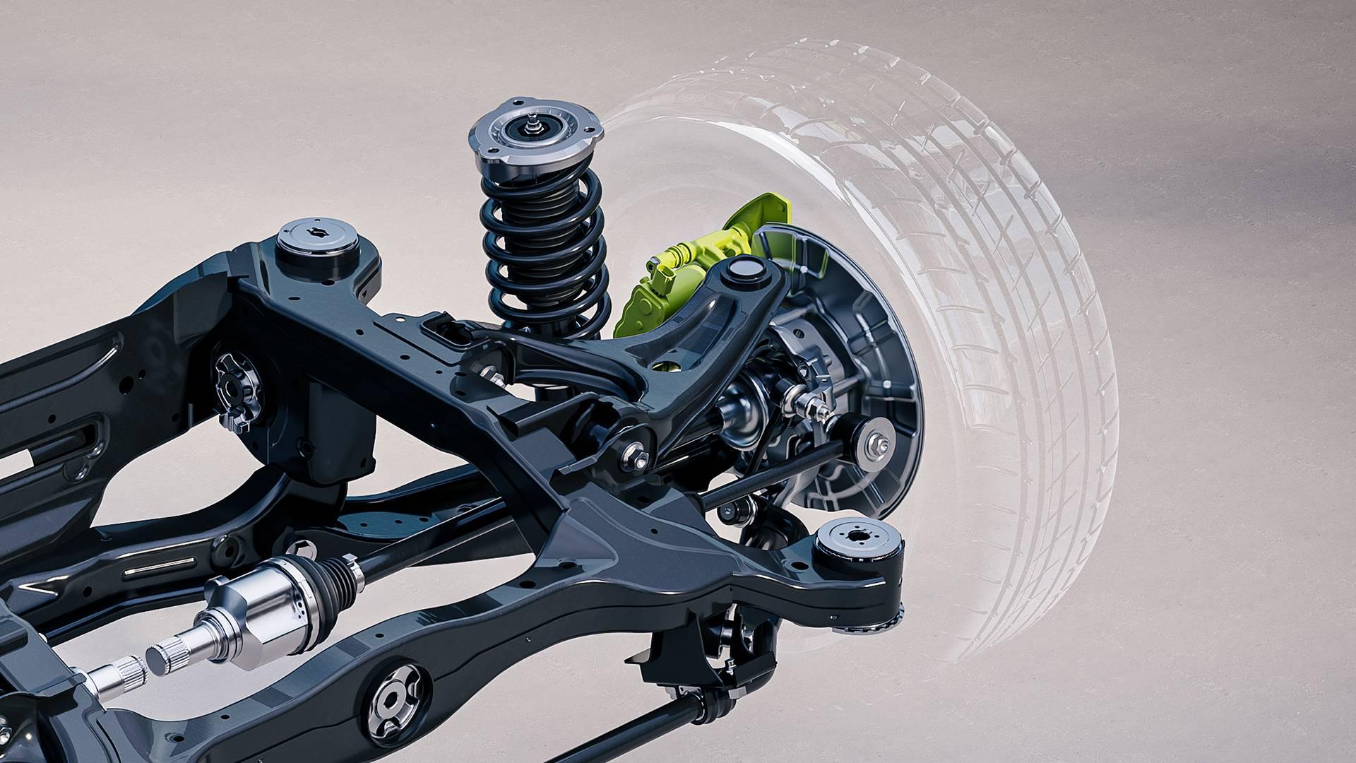 這項與 200 萬元的法拉利 296 同源的懸架技術,將懸架內的介質更換爲了「磁流變液」,在算法控制電流的作用下,可毫秒級改變減震器的軟硬程度。
