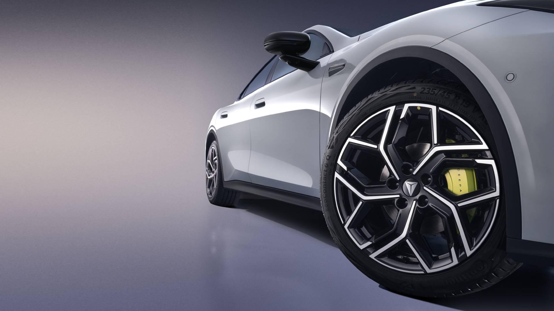 車身側面的運動風格更是一覽無遺,超窄無邊框後視鏡、車四門無框車門、隨速無極可調電動尾翼、雙燈帶懸浮尾燈、花瓣狀運動輪轂進一步加強了這輛車的運動氣質。