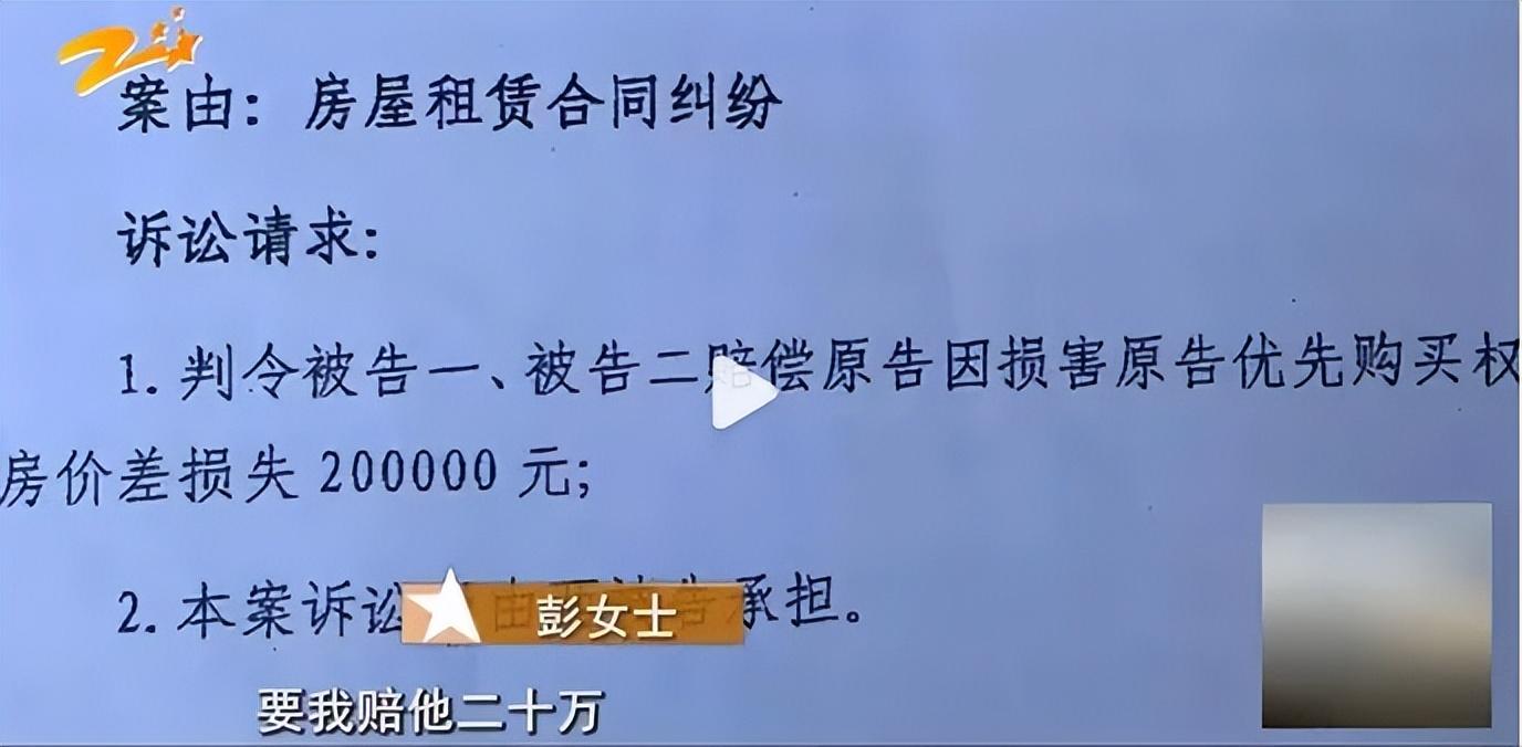 這一下,彭女士徹底懵了:“我明明先問了他,是他自己不買,我才賣給別人的,怎麼就侵犯他權利了?而且‘買賣不破租賃’,他又沒損失,還能住到合同到期,憑什麼讓我賠 20 萬?”
