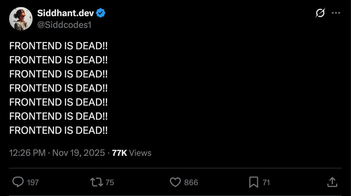 諸如此類「前端已死」的說法,在 Gemini 3.0 發佈之後,X 上隨處可見。