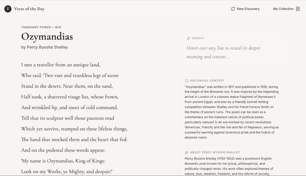 還有網友用 Gemini 3 直接做了一個詩歌探索器,讓它每天提供一首詩,鼠標懸停時會解釋每一行,並提供一些建議問題來進一步探索詩歌。