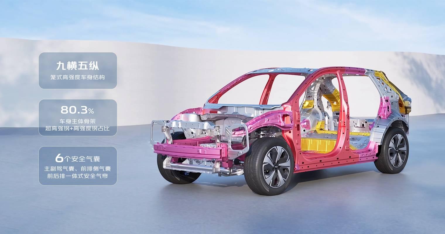 安全方面,Q05 車身採用九橫五縱籠式結構,高強度鋼佔比 80.3%,其中 1500MPa 熱成型鋼用於關鍵部位。全系標配 6 安全氣囊、540°全景影像、哨兵模式及 360°行車記錄儀。主動安全功能涵蓋 AEB、ELK、RCTB 等 20 餘項,覆蓋高速、城市及泊車全場景。