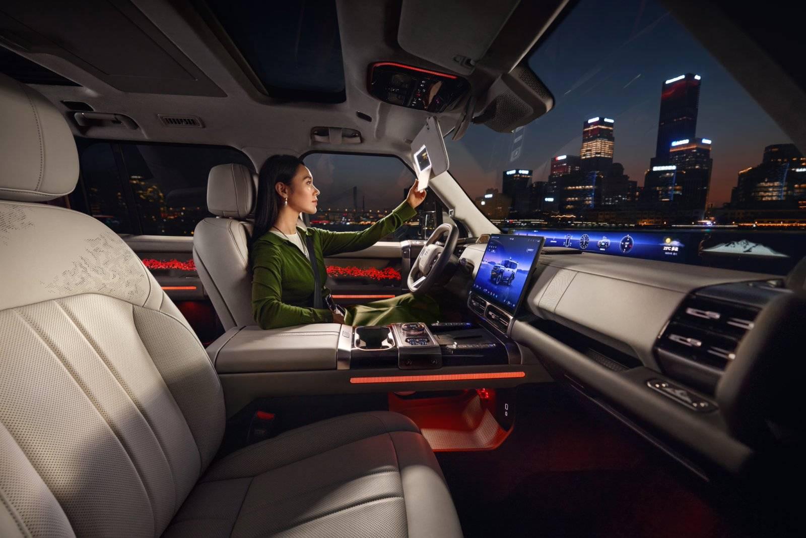 車內配備一塊 35.4 英寸的貫穿式「縱橫天際屏」,搭載華爲乾崑 ADS 4 輔助駕駛系統,配合 27 顆感知元件,宣稱支持「車位到車位」的全場景輔助駕駛。座椅採用頭層牛皮,內置通風、加熱、八點按摩及腿託功能;音響系統由萊斯康(Lexicon)定製,經專業聲學調校,確保每個座位均爲「黃金聽音位」。這些配置明顯瞄準了既要越野能力、又不願犧牲日常舒適性的高淨值用戶羣體。