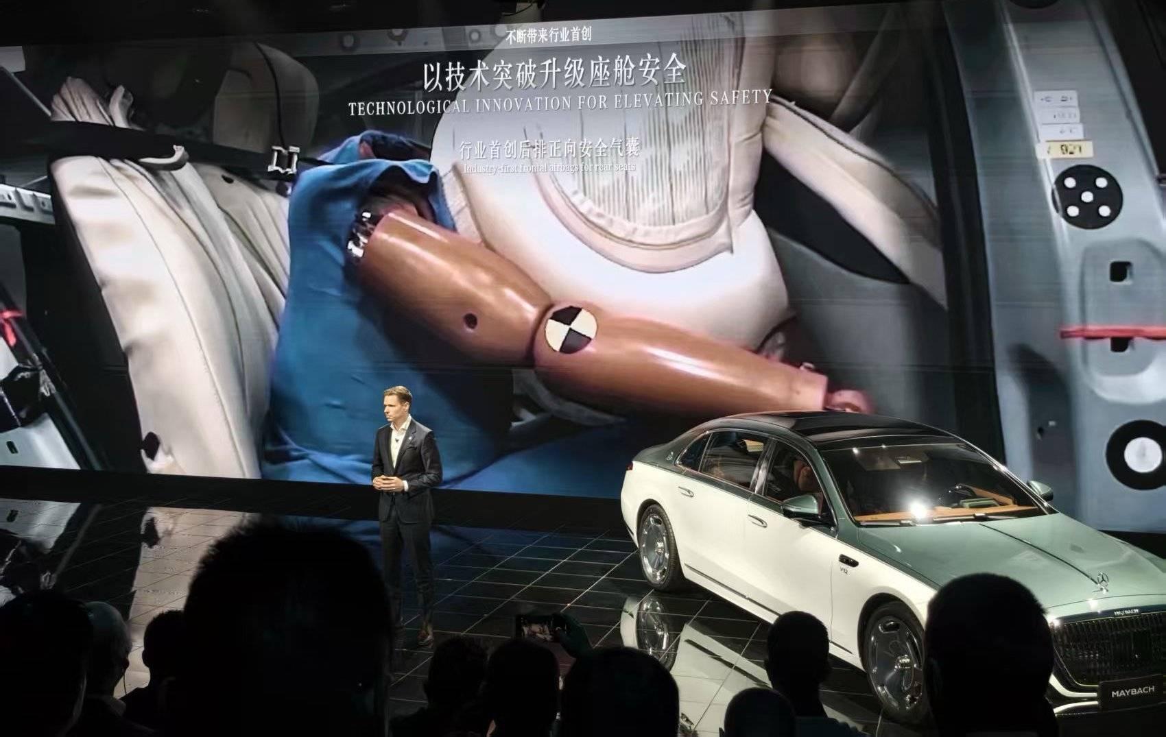 傳統汽車的安全重心習慣性偏向前排,而邁巴赫很清楚自己的核心客戶坐在哪裏,他們把後排的被動安全做到了現有技術的上限——這臺車不僅塞進了 15 個氣囊,還弄出了全球首創的後排正向安全氣囊。