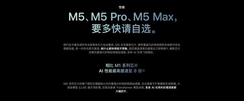 剛剛新鮮出爐的 M5 Pro/Max MacBook Pro,蘋果也將其包裝成一款「AI 電腦」,大而高速的集成內存,每個 GPU 核心內置神經網絡加速器,讓 MacBook Pro 成爲了 AI 模型部署、處理的最具性價比選手。