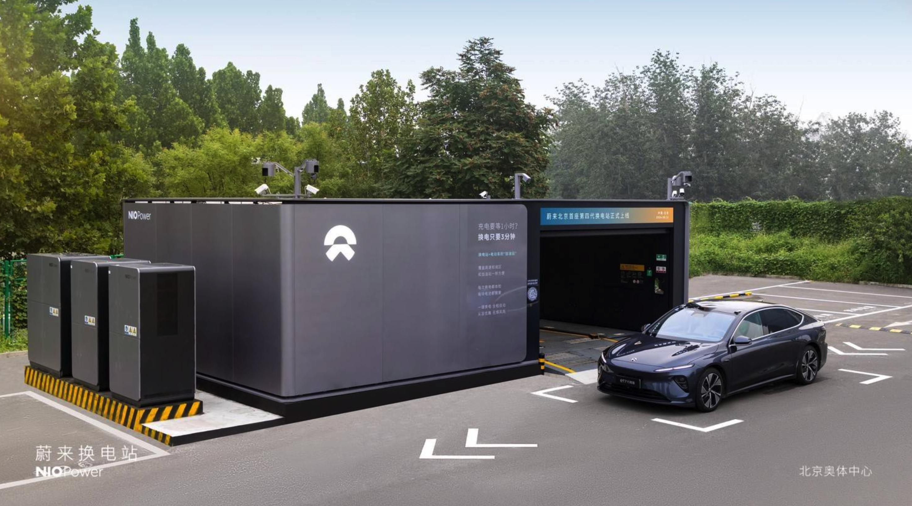 另一條路線是換電。蔚來目前已經在全國佈局 2500 座換電站,最新一代換電站完成一次換電只需 2 分 24 秒,速度甚至快過傳統加油。