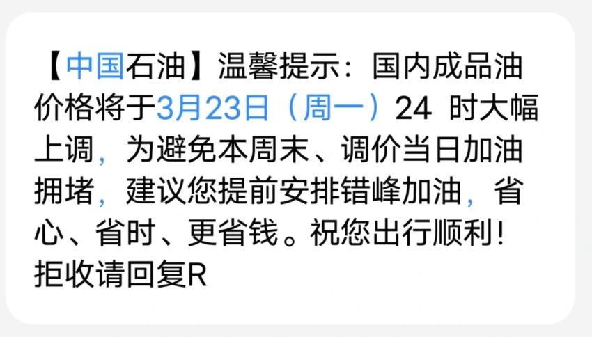 不少車主應該都在 23 日收到了中石化發來的加油提醒短信。