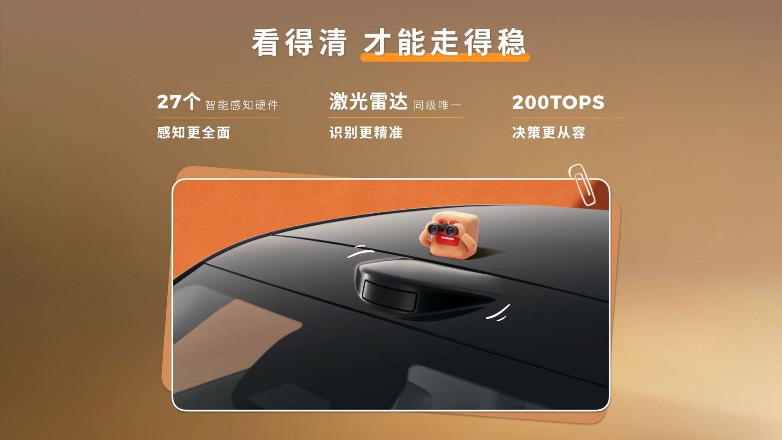 中高配車型搭載包括激光雷達在內的 27 個高精度感知硬件,並配備高通 8650 輔助駕駛芯片,實現同級少見的「車位到車位」全場景領航輔助駕駛能力。