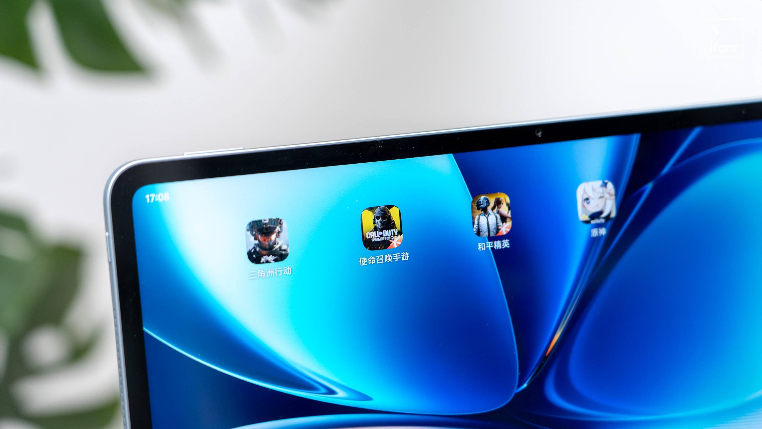 不過,13.2 英寸屏幕的機身,非平攤狀態下手持做多指操作會有點麻煩。像《原神》這一類操作不太複雜的遊戲還好,如果操控節奏相對緊張的射擊遊戲,那把平板放在桌面上再用手柄操作纔是更舒服的選擇。