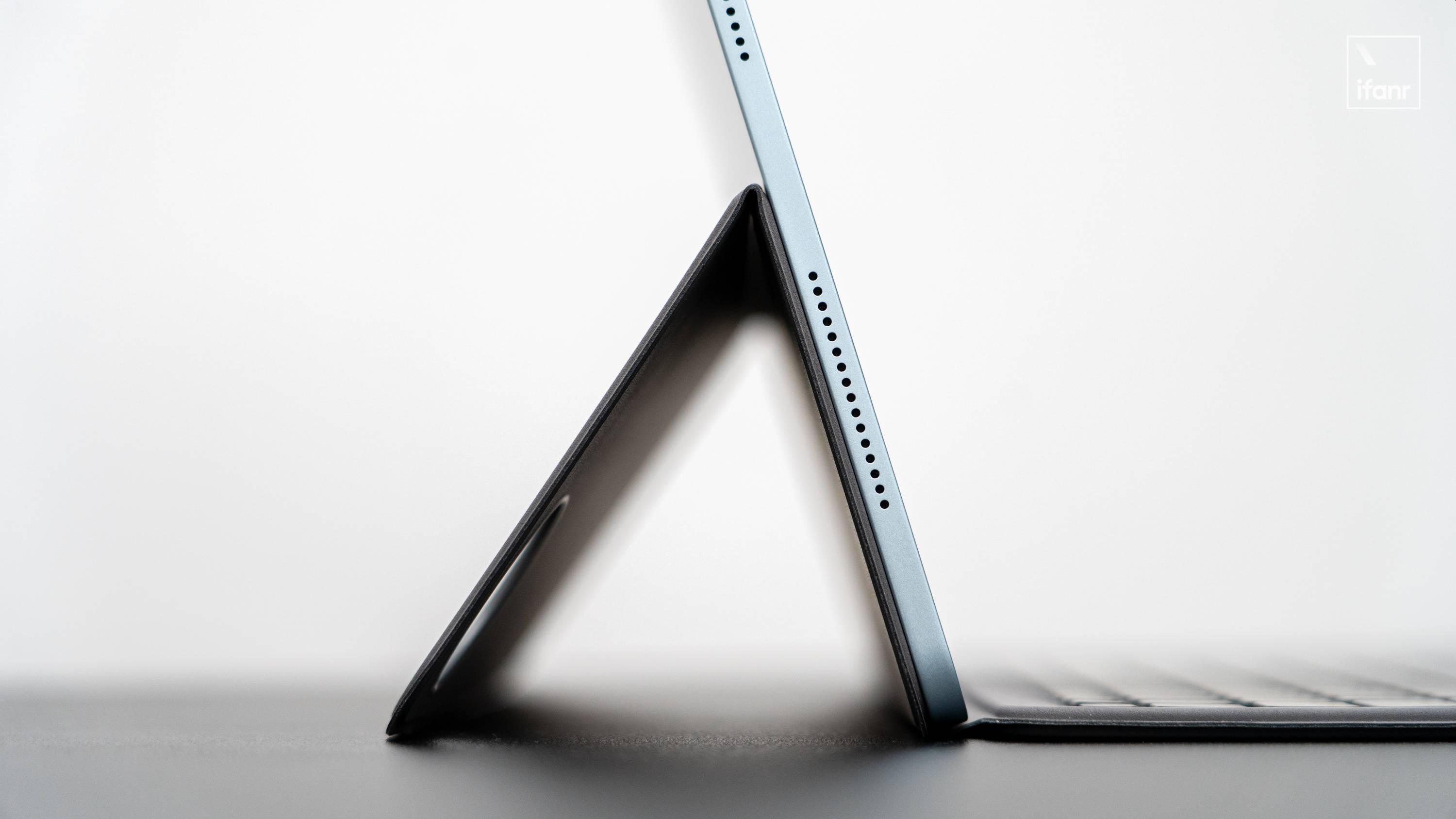 vivo 智能觸控鍵盤 6 Pro 沿用了上側下翻成支架的設計,底部 Popgo Pin 觸點部分有足夠的磁力,用戶折下支架時就不會出現把鍵盤取下的尷尬。