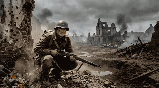 炮彈落點極近,衝擊波將士兵掀倒在地,落地瞬間聲音驟然壓低,變成沉悶的耳鳴聲,一切慢動作化。隨後耳鳴逐漸消退,槍炮聲、戰友呼喊聲與金屬碰撞聲重新湧入,從壓制到爆發,層次感極強。