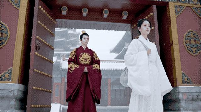 雪夜離宮戲則是更明顯的案例,鏡頭極緩推進那隻握緊袍袖的手,女主背影越來越小,風雪越來越大,皇子始終立在原處,一步未動,全程沒有臺詞。