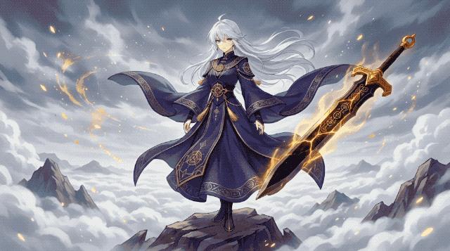 仙俠戰場那段,女主角站于山巔,雙手結印,暗金粒子從指縫溢出凝聚成旋轉符陣,符陣驟然爆裂,神劍破空而來,刀鳴餘震持續顫動,鏡頭隨劍飛行軌跡快速跟拍,定格至女主與神劍並肩的全景,粒子餘燼在空中緩緩飄散。