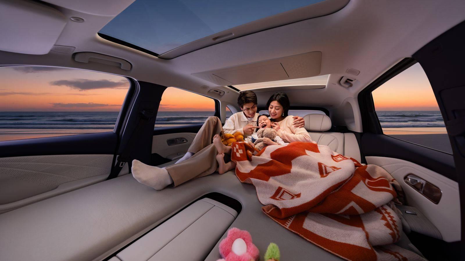 此外,座椅放平後車內可以形成一個長度超過 1.8 米的連續平整空間,配合前後排雙大牀模式,能夠滿足部分用戶在戶外露營場景下的休息需求。此外,全車還合理分佈了 38 處儲物空間,對門板、中控臺以及前後排扶手等高頻使用區域進行了細緻的空間挖掘。