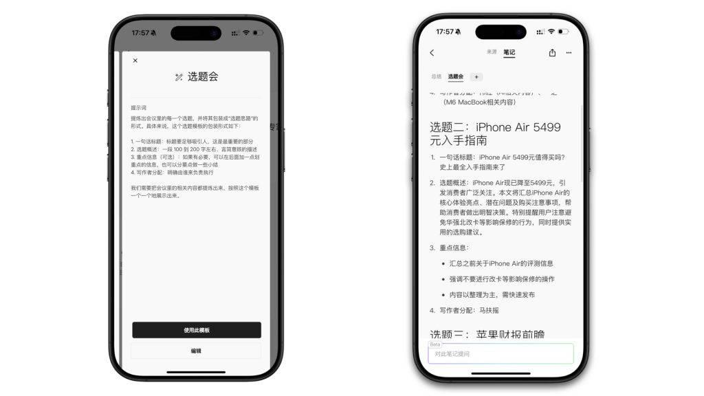 比如,我們每天早上都會開選題會,涉及到選題內容、選題核心、重點信息、負責編輯這些要點,普通轉寫能夠記錄,但很難成爲一份能直接執行的東西。