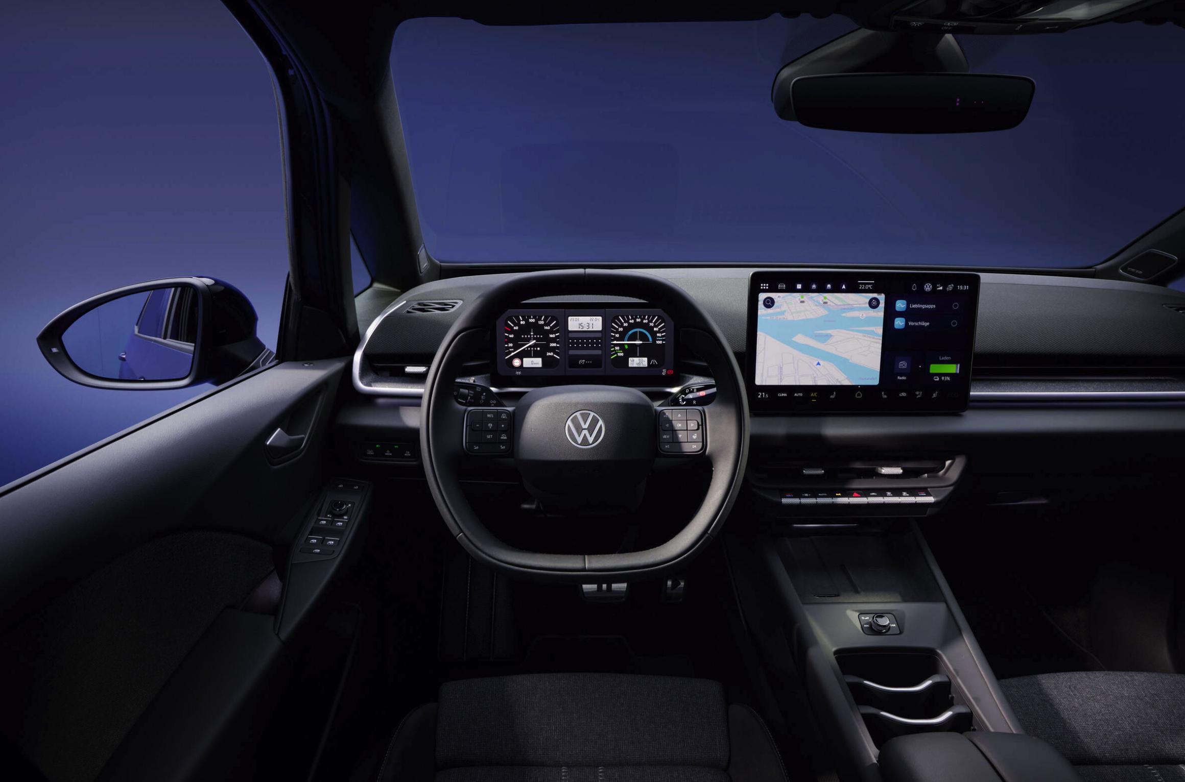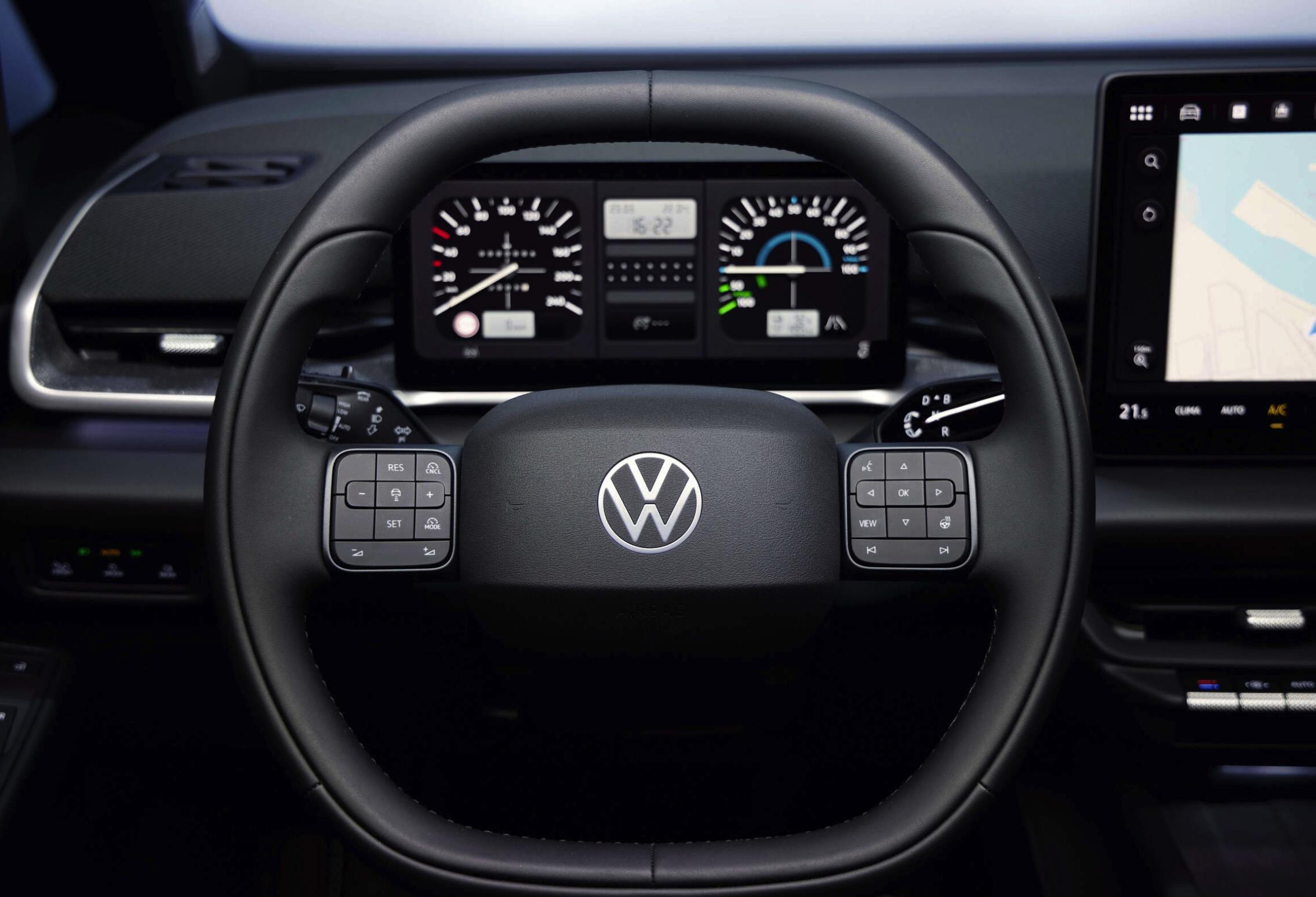 - 全新設計的雙輻式方向盤不僅配備了發光的大衆 Logo,更將此前的觸感反饋按鍵全部替換爲實體按鍵;