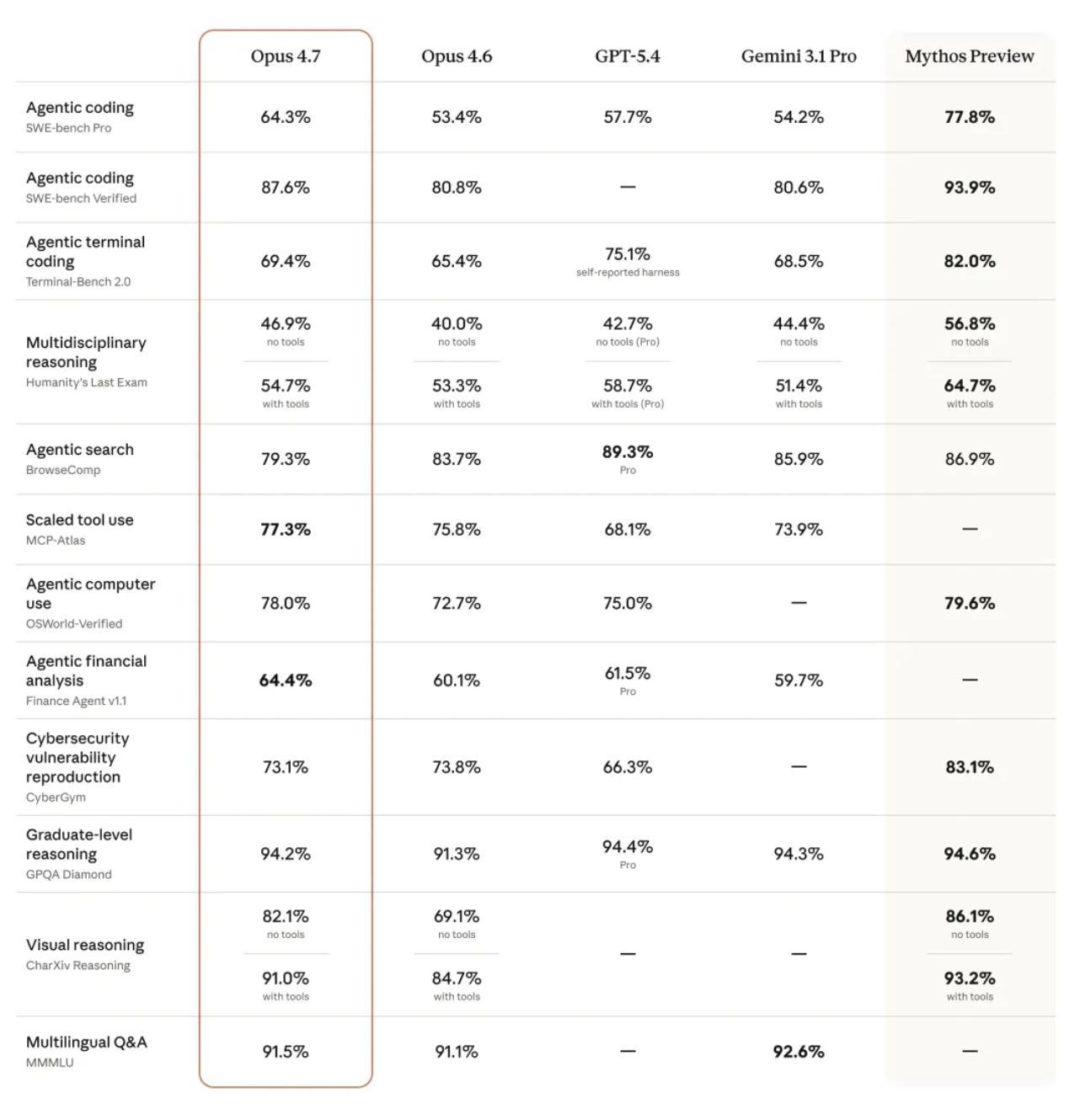 而就在剛剛,萬衆期待的 Claude Opus 4.7 也正式發佈,依舊是熟悉的配方,熟悉的高分選手。