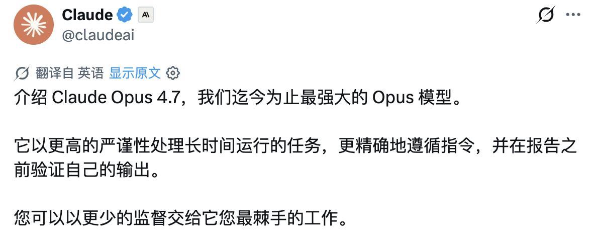 剛剛,Claude Opus 4.7突然發佈:不是最強,但奧特曼又得失眠