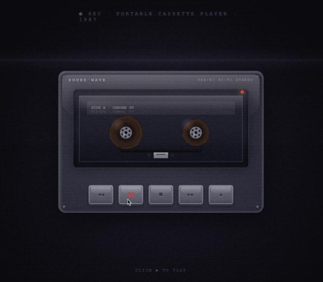 第三個場景是做一個復古磁帶隨身聽,帶有錄像帶那種老舊的噪點效果。磁帶轉動的細節也是有的。