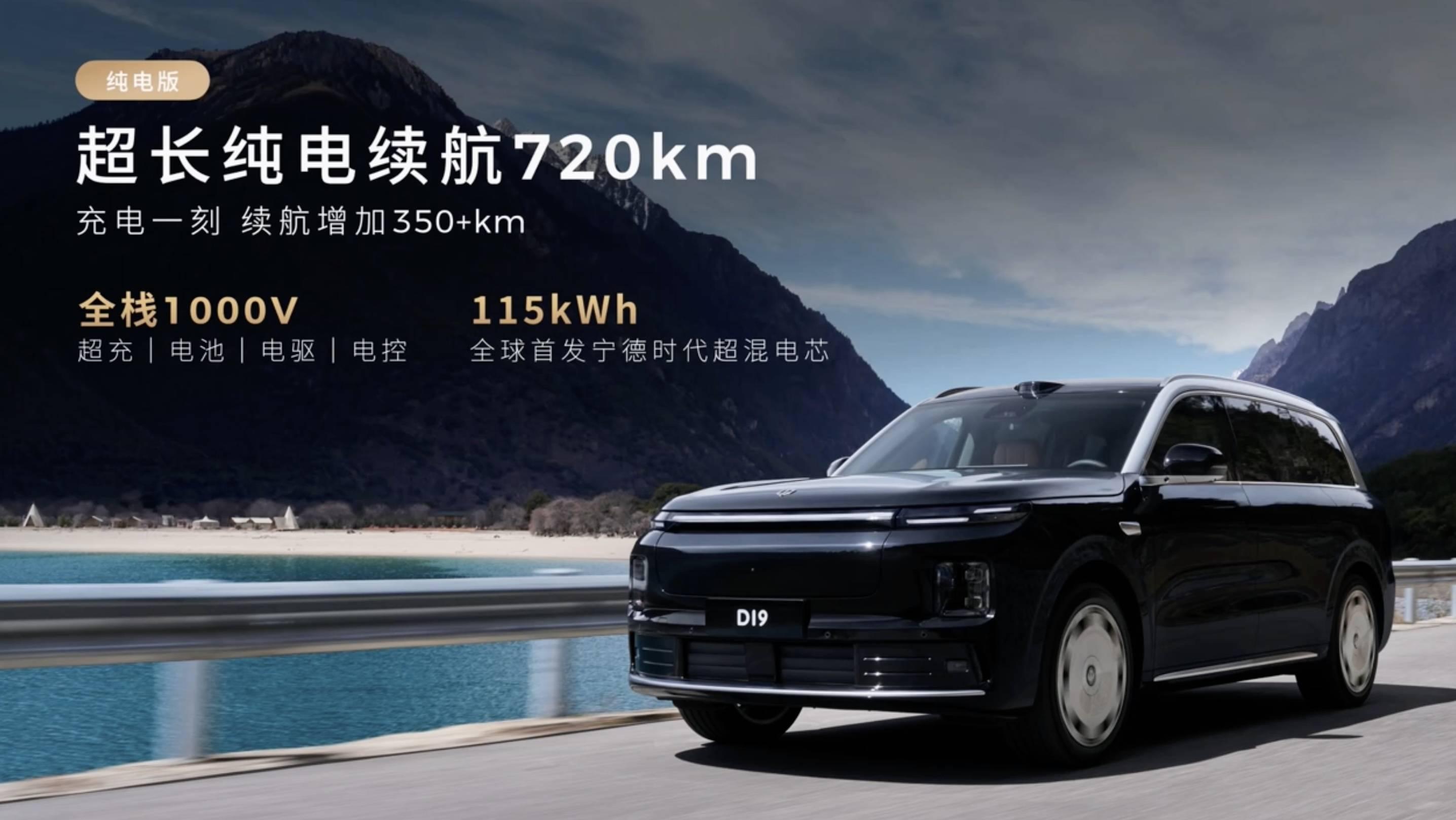 純電版本則首發寧德時代 115 度超混電芯,配合全棧 1000V 高壓架構,CLTC 純電續航達到 720 公里,充電 15 分鐘可以補充 350 公里。