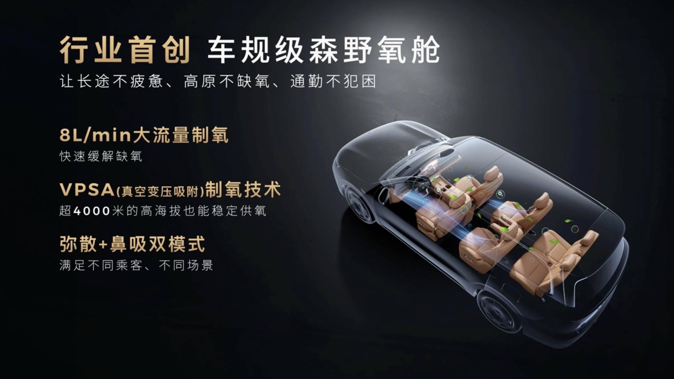 最有意思的配置是車規級的「森野氧艙」,能提供每分鐘 8 升的富氧空氣,支持彌散和鼻吸兩種模式。對於喜歡挑戰高海拔自駕,這套供氧系統十分對口。
