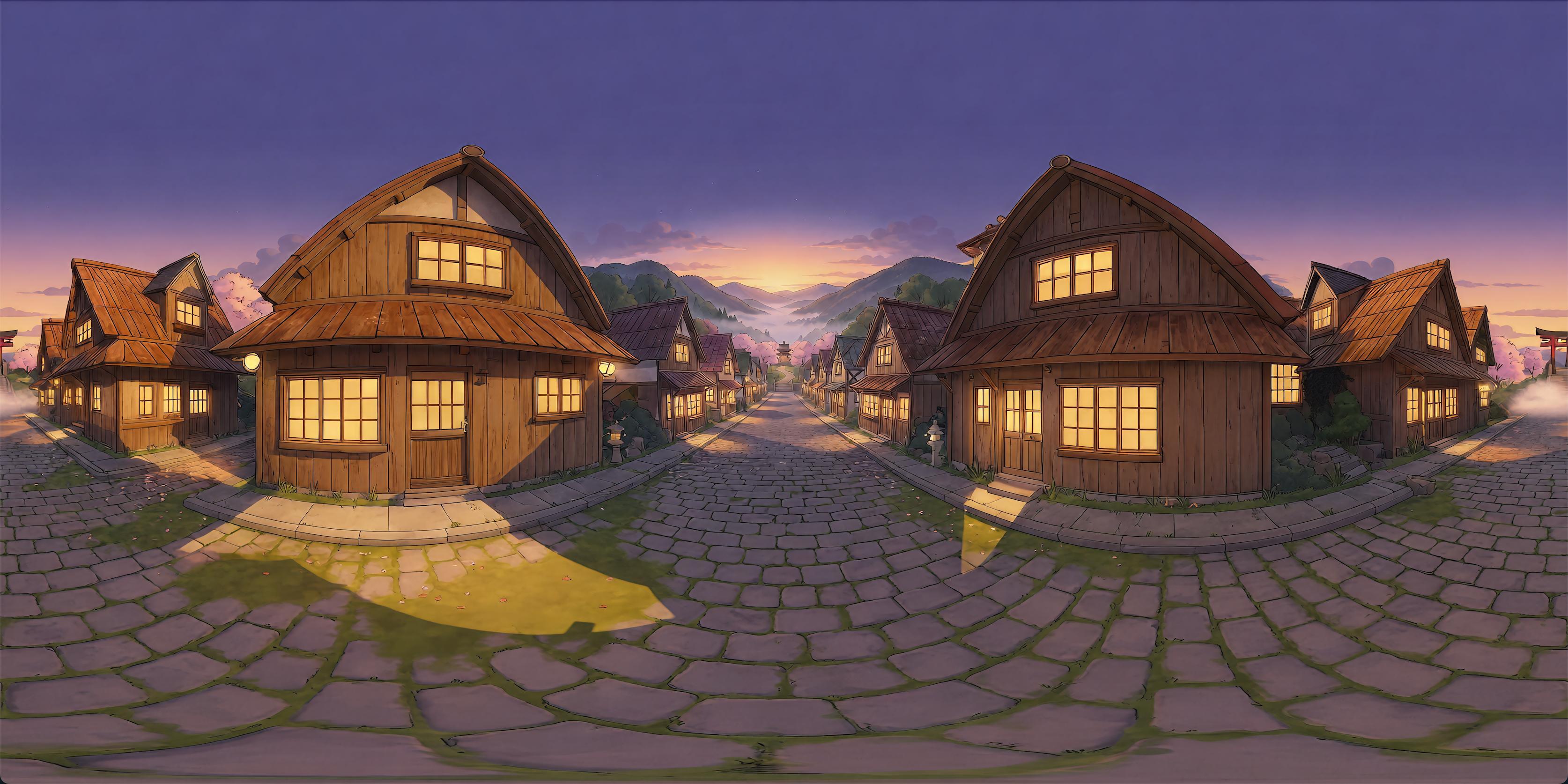 在體驗中,我用簡單的提示詞輸入了「吉卜力風格的山間小鎮,黃昏」。在幾分鐘的計算後,出現在屏幕上的畫面像是一個大世界遊戲。
