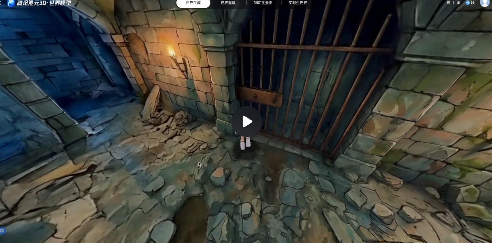 混元 3D 世界模型 2.0 的風格化控制表現也很好,從官網已有的世界案例能看到,無論是溫馨的繪本風還是寫實的遊戲風,它對語義的解析非常精準;牆壁的紋理、地牢的陰影和光感都極具沉浸感。