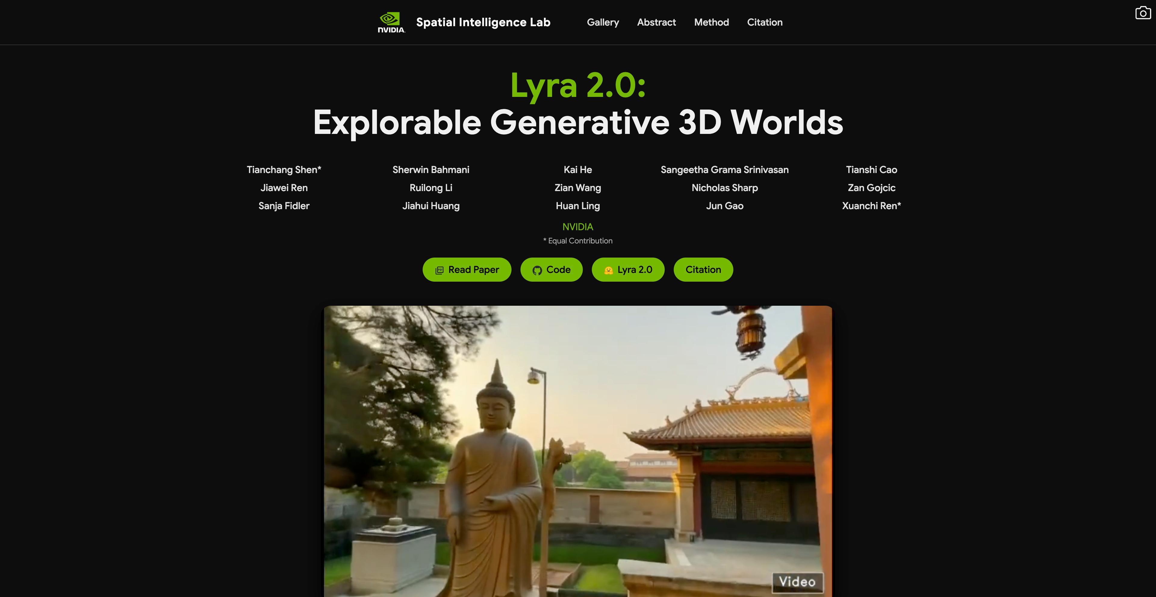 最容易忽略的還有英偉達 Lyra 2.0,沒有發佈會和新聞稿,旗下的空間智能實驗室直接甩出一篇論文,「可探索的生成式 3D 世界。」