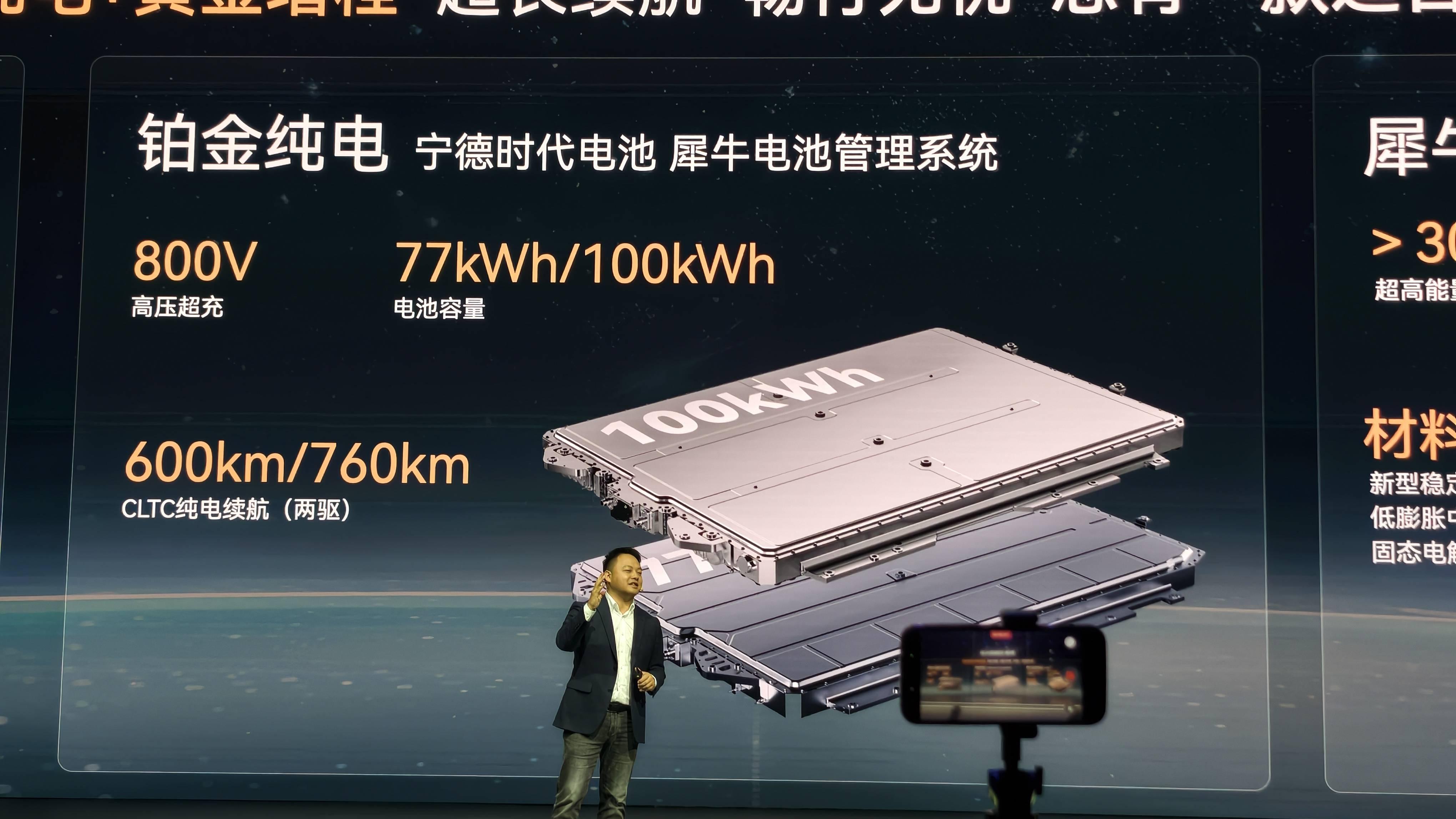 純電版全系基於 800V 高壓平臺打造。它提供了 70.01 度和 100.26 度兩款寧德時代電池,對應的 CLTC 續航里程分別爲 600、682 和 726 公里。